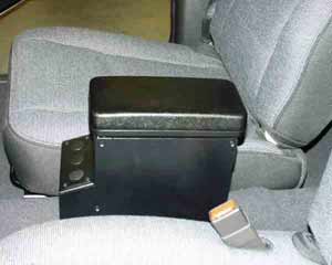6" wide, 11.25" long (including lighter outlet box) , 9" deep, 2" thick molded rubber armrest pad for comfort
