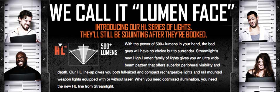With the power of 500+ lumens in your hand, the bad guys will have no choice but to surrender. Streamlight’s new High Lumen family of lights gives you an ultra wide beam pattern that offers superior peripheral visibility and depth. Our HL line-up gives you both full-sized and compact rechargeable lights and rail mounted weapon lights equipped with or without laser. When you need optimized illumination, you need the new HL line from Streamlight.