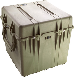 #0370NF CUBE CASE Introducing the Pelican 24" Cube Case. We teased our engineers about pocket-protectors and they came back with the new Pelican 24" Cube Case. It’s so square we thought they were having one on us. Then we showed it around and realized they’re on to something. Extra deep so you can layer foam or padded dividers (it’s like a split level condo for gear). Which is why it’s got those gorilla-sized handles: a man on each side with a double hand hold each to heave those heavy loads. Available with optional detachable caster wheels.