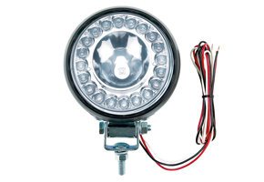 A ring of 20 white high-intensity LEDs in a metallized array projects a wide-angle flood light.