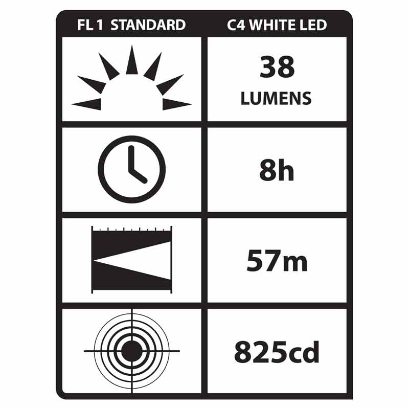C4® LED technology, impervious to shock with a 30,000 hour lifetime