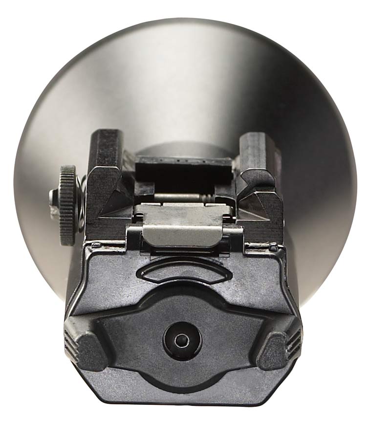 C4® LED technology, impervious to shock with a 50,000 hour lifetime 48,000 candela peak beam intensity; 775 lumens; runs 1.75 hours Mounts directly to all MIL-STD-1913 (Picatinny) rails and weapons with Glock-style rails Includes rail locating keys for mounting to a variety of rails and lithium batteries Standard Switch: Ambidextrous momentary/steady On-Off Tethered battery door and latch mechanism prevents battery door loss while providing easy battery replacement One handed snap-on and tighten interface keeps hands away from muzzle when attaching/detaching Extensively live-fire tested impact resistant construction Deep dish parabolic reflector produces long-range targeting beam with optimum peripheral illumination Powered by two 3V CR123A lithium batteries (included) Durable anodized aluminum construction Unbreakable polycarbonate lens with scratch-resistant coating IPX7; waterproof to 1 meter for 30 minutes Operating temperature: -40°F to +120°F Serialized for positive identification Length with standard switch: 4.83 in. (12.27 cm) Length with remote switch: 5.25 in (13.34 cm) 5.3 oz (150.3 grams) with standard switch and batteries 5.6 oz (158.8 grams) with remote switch and batteries Limited lifetime warranty