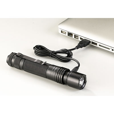 High lumen tactical light that is USB rechargeable, so you can charge on-the-go using almost any USB source. It also accepts multiple battery sources to use as a back up so you’ll always have power when you need it.