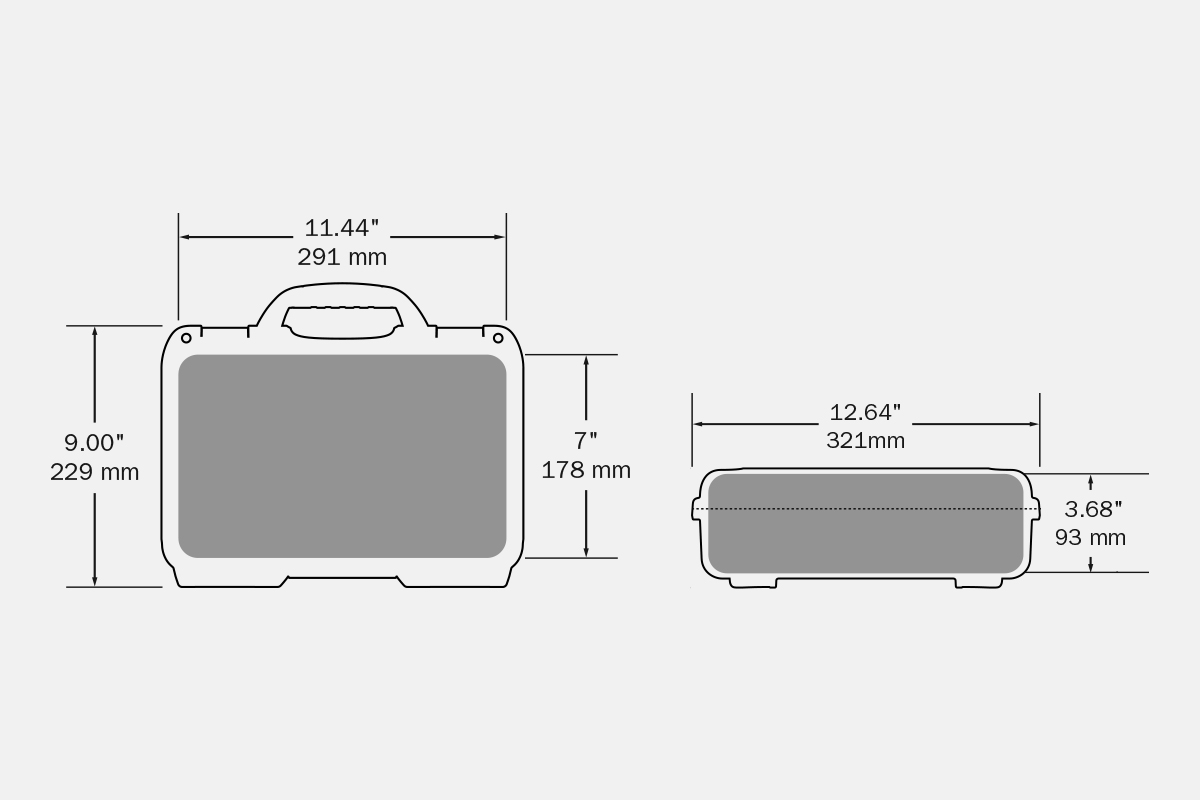 Interior dimensions L11.44″ x W7.0″ x H3.68″ - L291mm x W178mm x H93mm