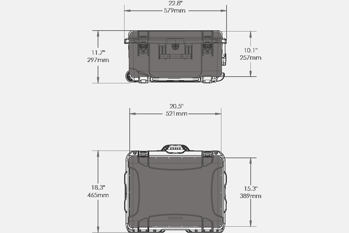 Exterior dimensions L22.8″ x W18.3″ x H11.7″ - L579mm x W465mm x H297mm