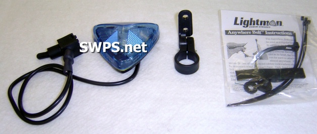 Lightman Strobe is attached to a corded remote switch for easy on/off. Ideal for bike patrols, providing instant visibility without having to reach back or dismount to activate.