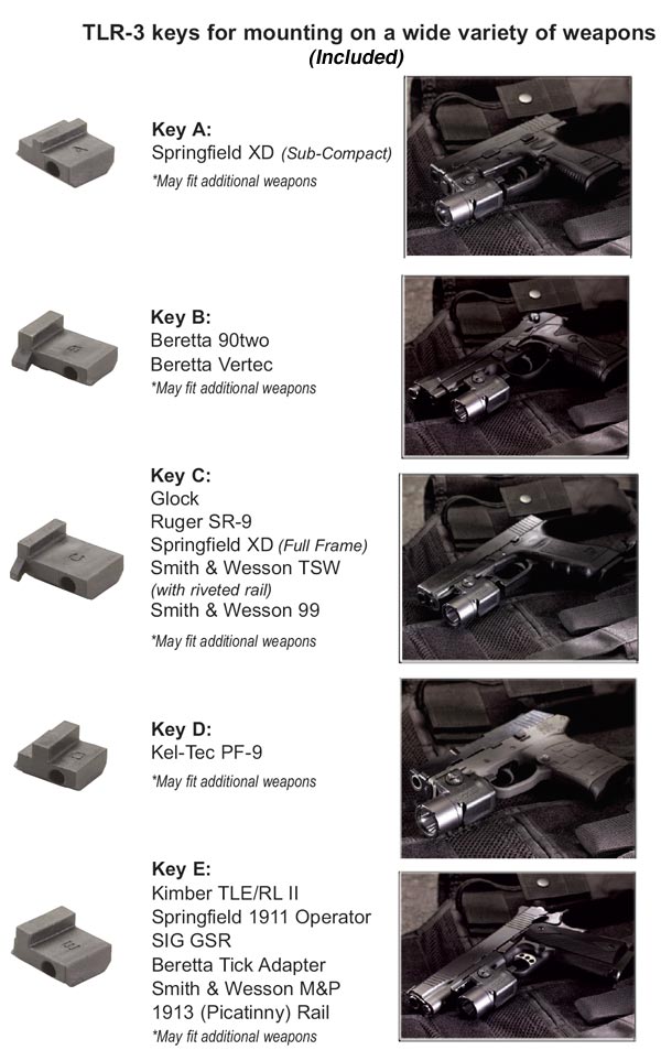 **** Streamlight is now shipping the standard TLR-3 with Key “A” installed. This key is for the Springfield XD (Sub-Compact).